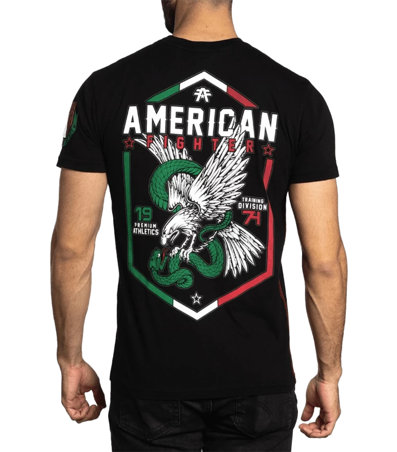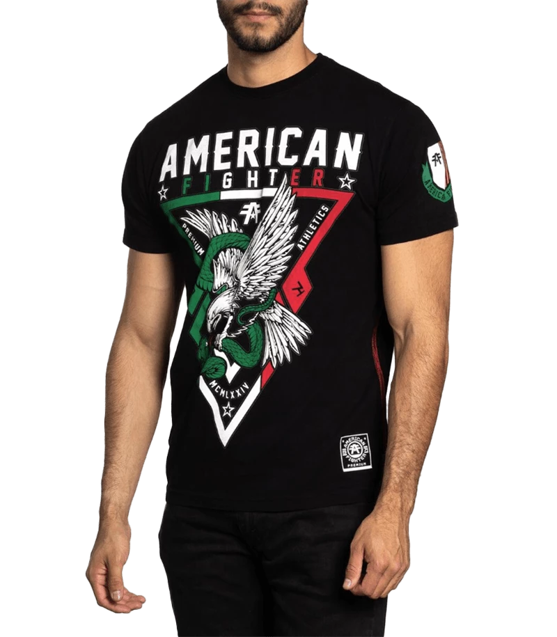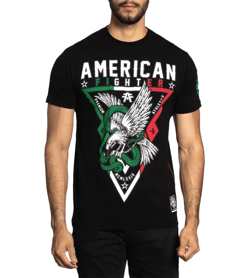 Get in style with this American Fighter T-Shirt. Good shirt to represent Mexican roots. Goes perfect with any pair of jeans.Â