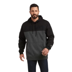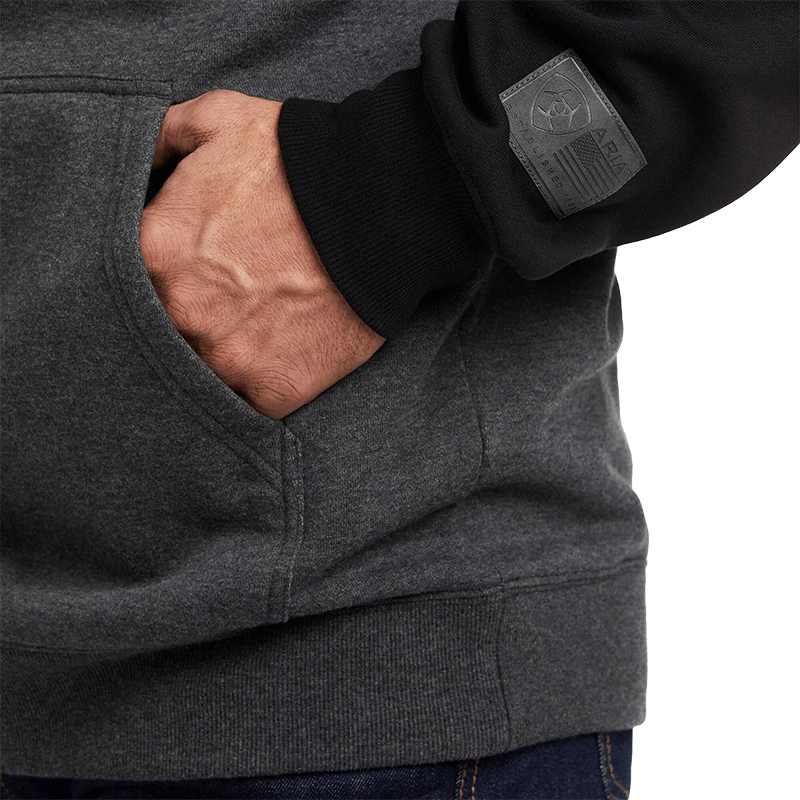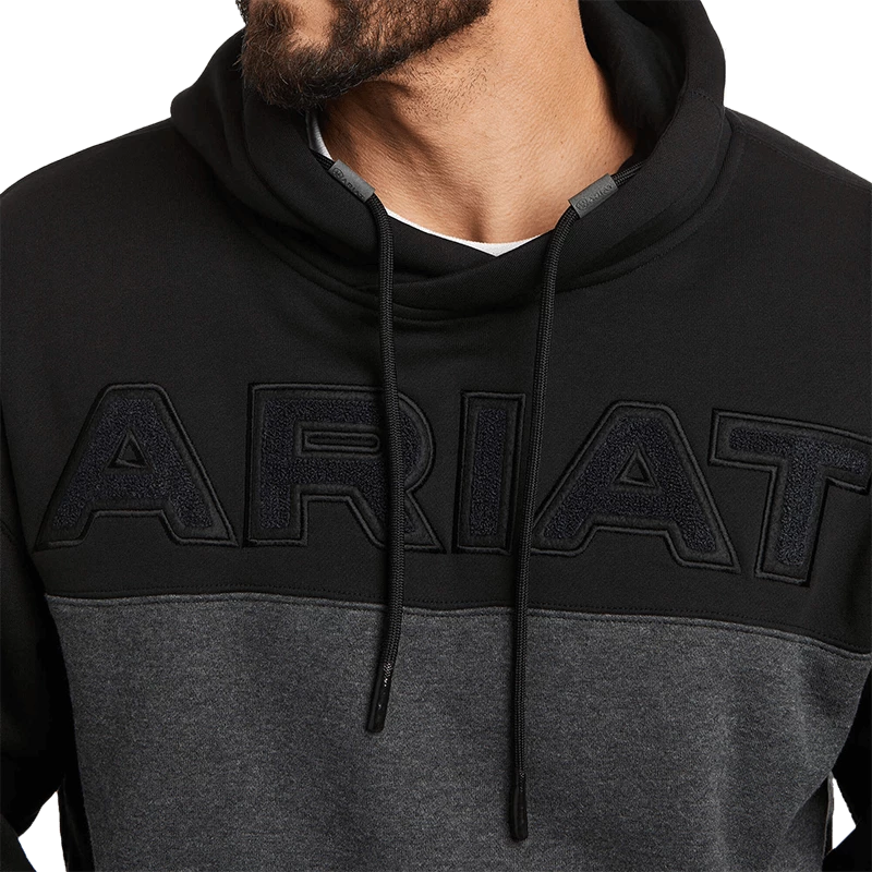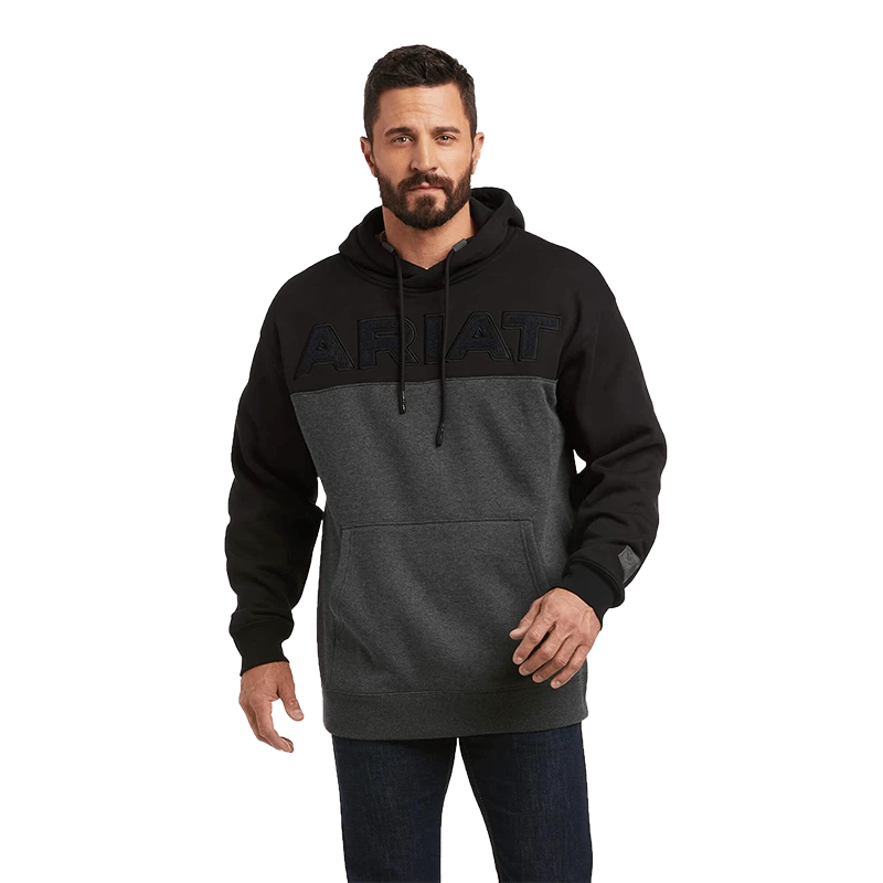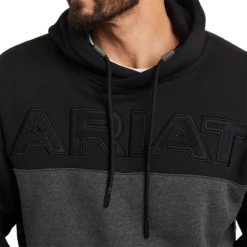 Get your hands on this Ariat hoodie sweatshirt! This heavyweight layer features elevated details such as an embossed logo, leather-like arm patch and dipped drawstrings.