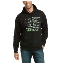 This Ariat Black Flag Green Hoodie provides great arm mobility for greater arm motion. The perfect basic to throw on for any occasion. Get your hands on it now!