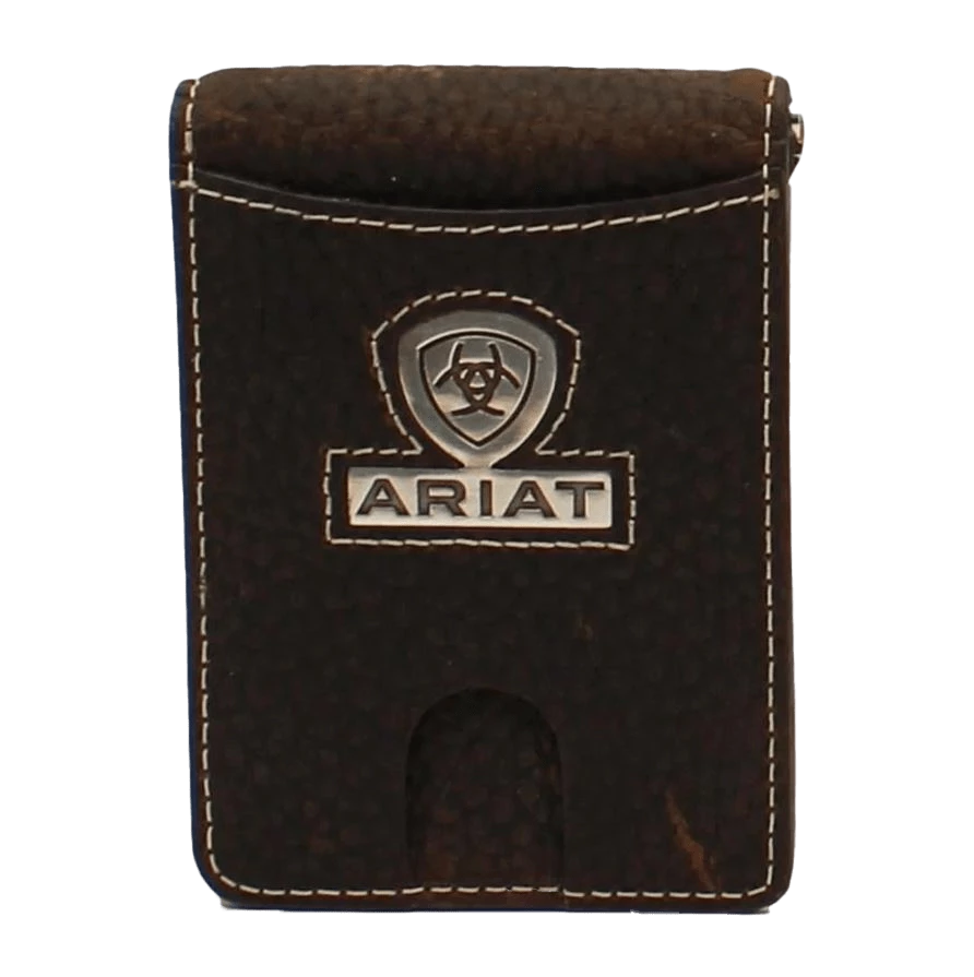 Simplify with this men’s Ariat bifold money clip wallet by M&F Western Products. Made with genuine leather with Ariat shield logo concho in the center.