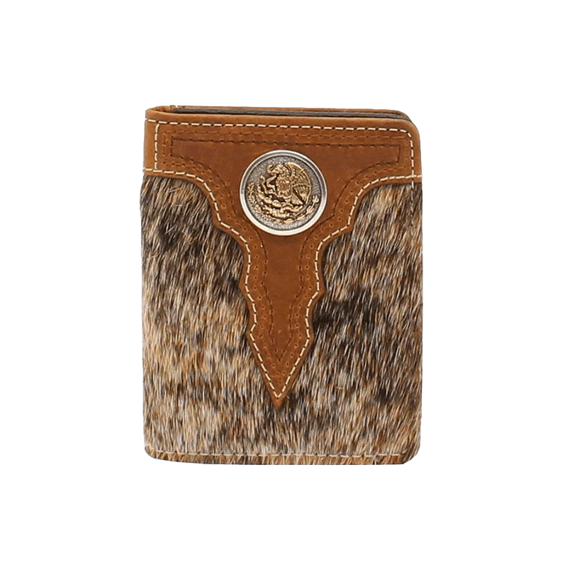 Ariat Bifold wallet by M&F Western Products is crafted with calf hair and has an mexican eagle concho. Includes multiple card slots and allows for credit cards, currency and ID.