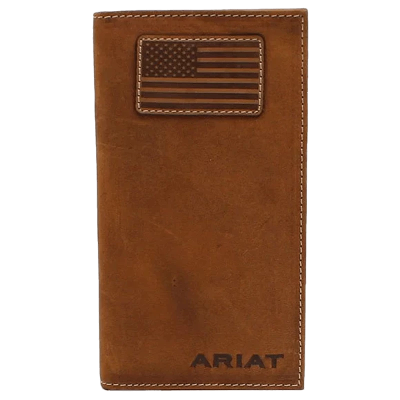 Step out in style with this wallet from Ariat. The wallet is crafted with brown leather and features a flag patch. With more than enough space inside, it is surely a great everyday wallet to take out.