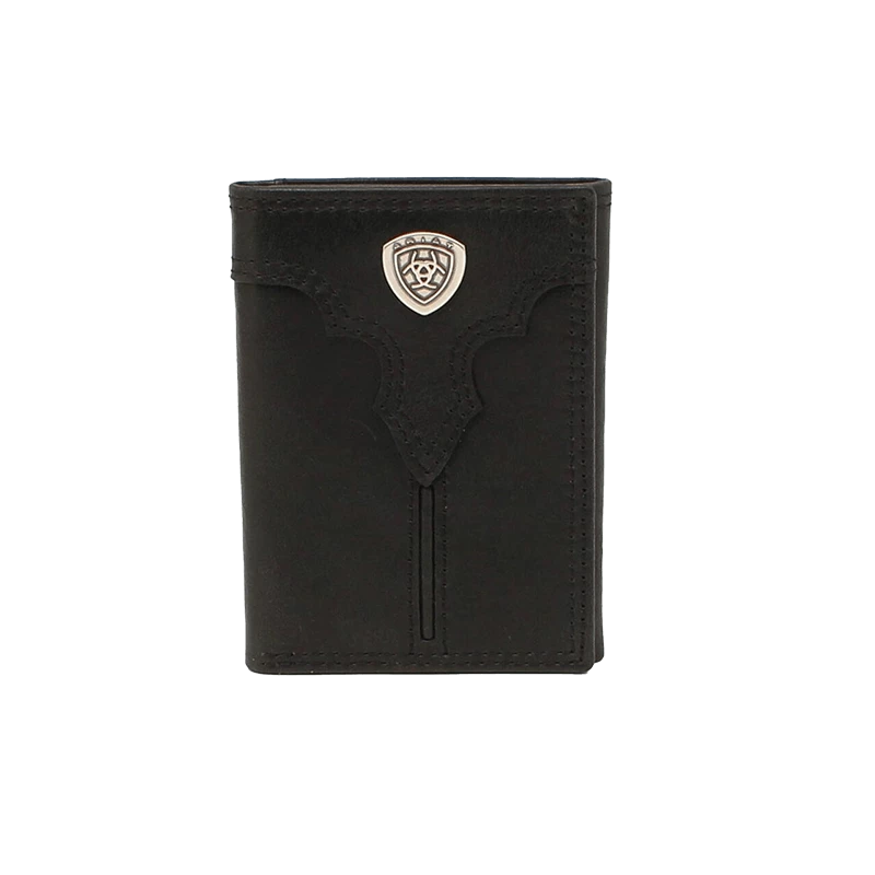 Keep your stuff organized with this Ariat men’s trifold wallet from M&F Western. Crafted from genuine leather, this wallet has multiple compartments for your cards, cash and ID.Â