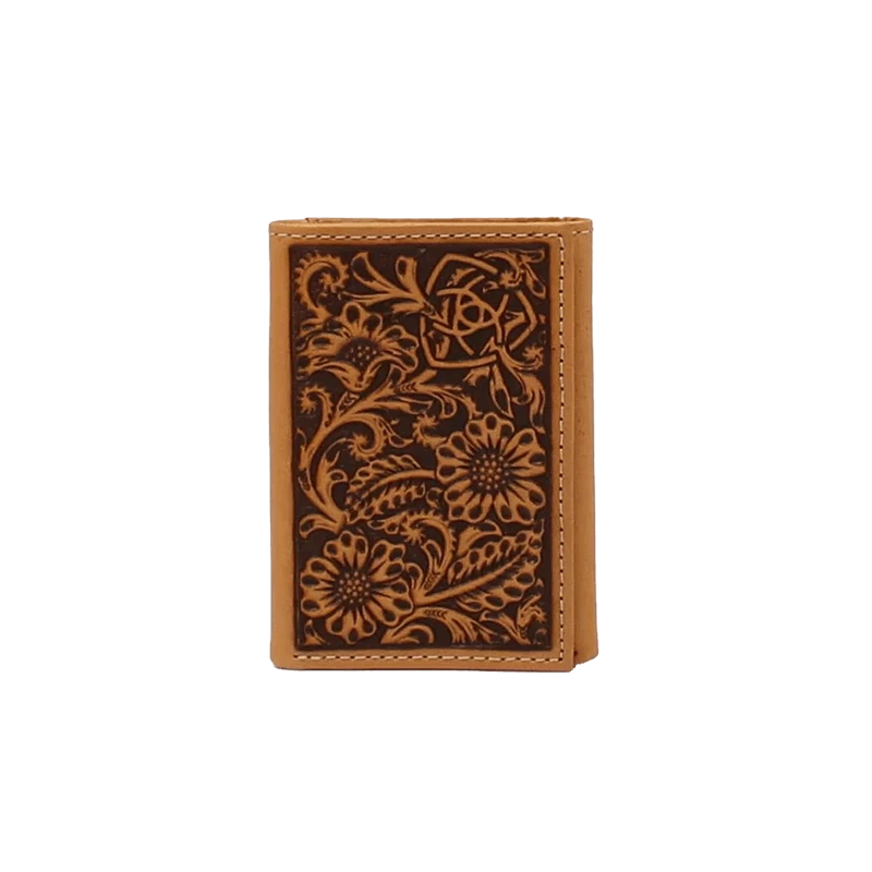 This beautifully crafted Ariat wallet features a western floral embossed design. Inside features multiple compartments for your credit cards, cash, and a place for your ID.