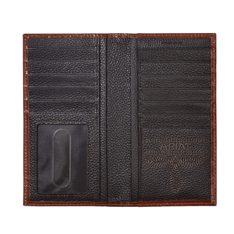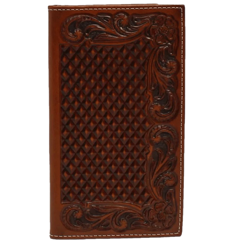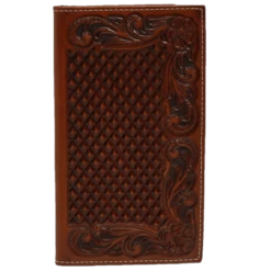 The Ariat Mens Rodeo Basket Weaved Floral Embossed Wallet is a beautiful and functional accessory that is sure to complement any outfit and is made of durable leather that is sure to last for years.