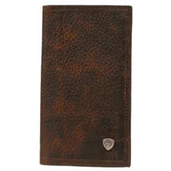 Get classic style with this Ariat Rodeo Shield Wallet. It features a simple design made of top grain leather with an Ariat logo shield in the bottom right corner. It has multiple card slots and an ID slot.