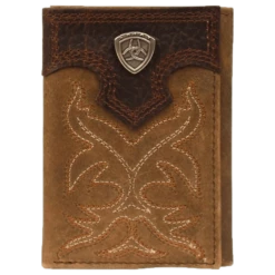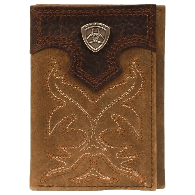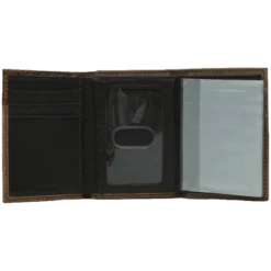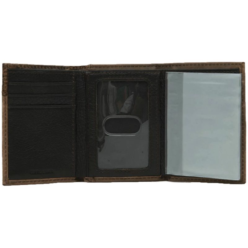 - Distressed brown trifold leather