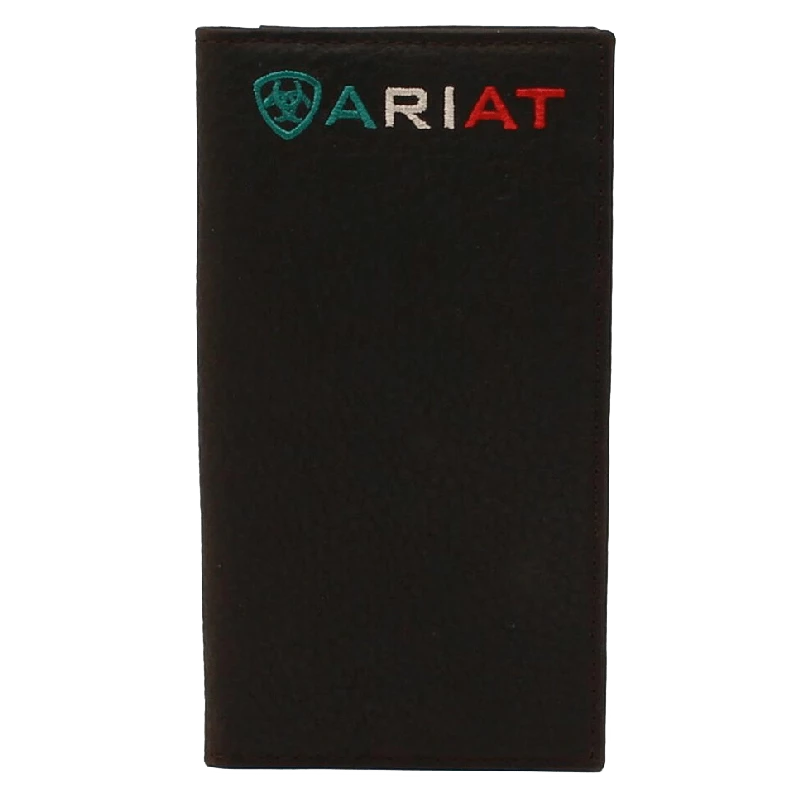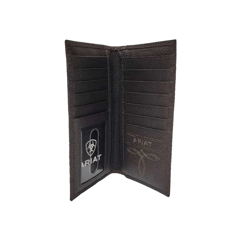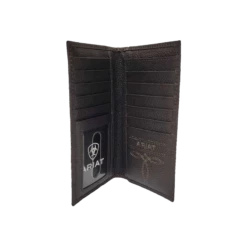 Stay both organized and in style with this Ariat rodeo wallet by M&F Western Products. Genuine leather with Ariat shield logo. Features multiple compartments for your credit cards, cash and ID.
