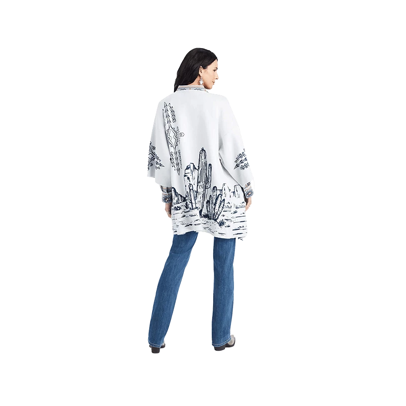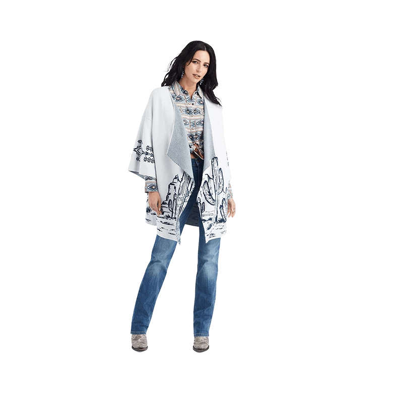 This Ariat Desert Cardigan is effortless and elegant! This incredibly soft cardigan is perfect for layering on over a dressy top or casual tee. The beautiful, knit-in desert scene adds southwestern flair.