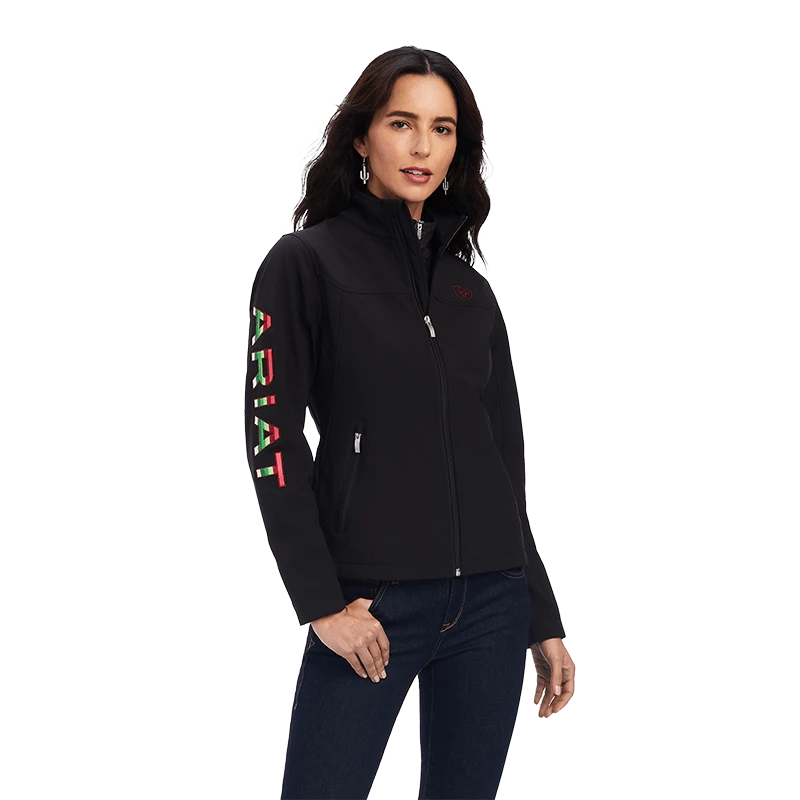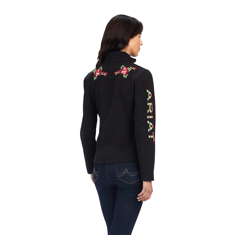 Purposely designed to keep you comfortable and dry on breezy, wet days at the barn, this classic softshell jacket is given a feminine touch with the addition of embroidered roses that vibrantly decorate the jacket’s shoulders.