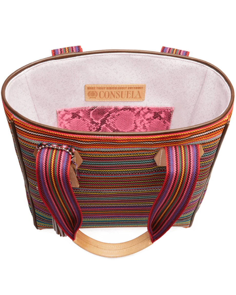 With a vibrant woven exterior, our Ale Classic Tote makes a statement and is ideal for life on the go. This multipurpose tote is trimmed in leather and made to maintain its shape. It is topped with our woven handles that have become our trademark. Our tote has pockets and a big inside.