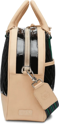 The Consuela Commuter is ideal for commuting to work or traveling to a new location where you need more items close by and at hand. It can accommodate an 11″ laptop and secures everything you need for work within the zippered compartment.