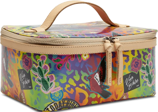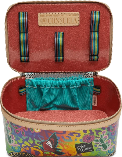 The Train Case is ideal for storing makeup, brushes, serums, and other items, making it ideal for packing for a trip or organizing your counter top.