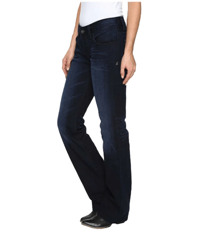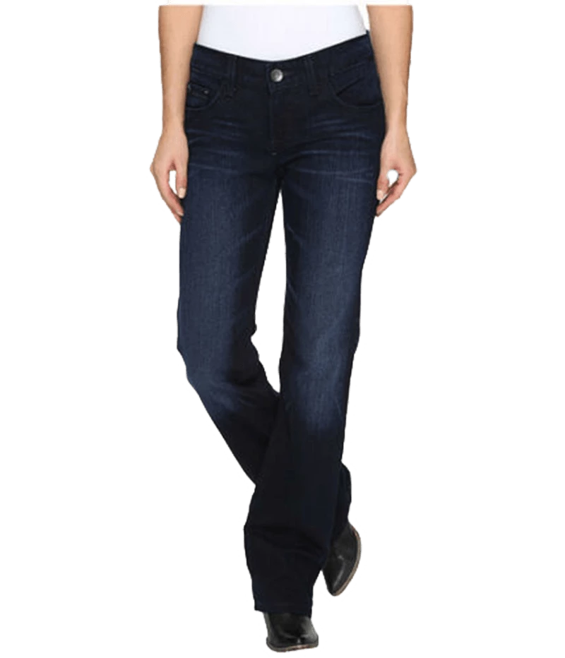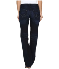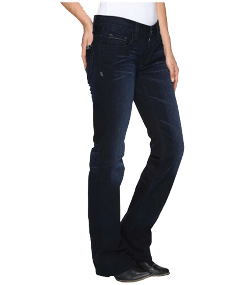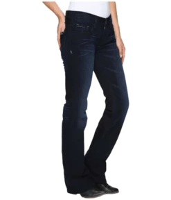 These women’s Abby jeans from Cruel Girl have a dark wash and charcoal & navy signature back pocket embroidery. These slim-fit jeans have a mid-rise and bootcut leg. They also have a button zip front.Â