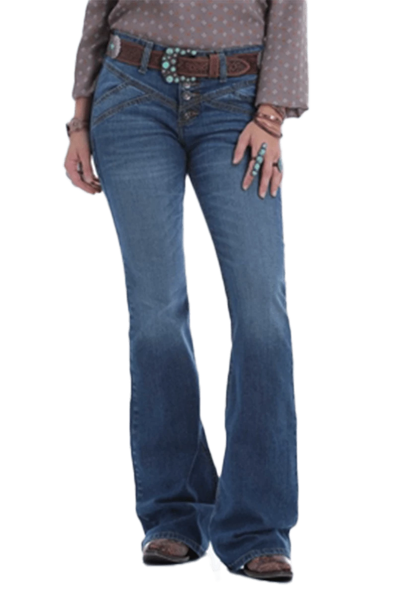 This Cruel Girl Bareback jean has a 22″ flare leg, double front yokes, and button fly. A classic medium stonewash and traditional tobacco topstitch ensure this bareback jean is here to stay.