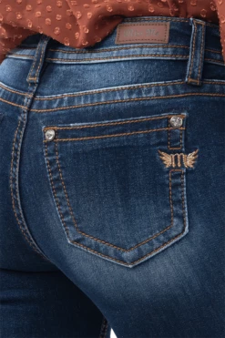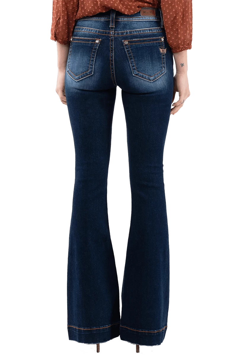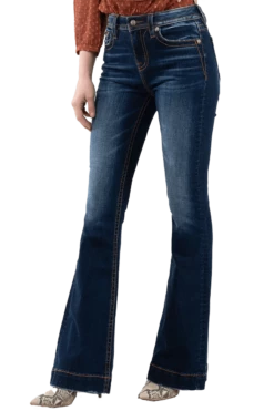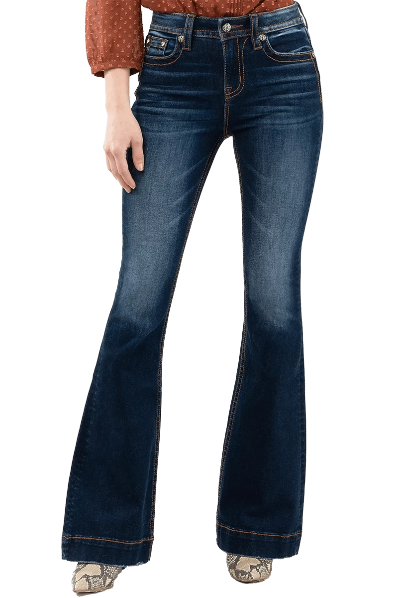 With whiskering, contrast stitching, and a 5-pocket style, these high rise flares have the perfect amount of flirtatious trendiness.