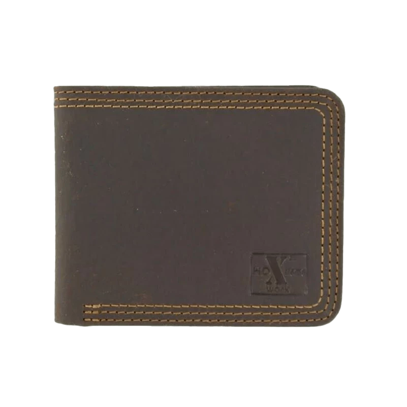 - Brown bi-fold leather wallet