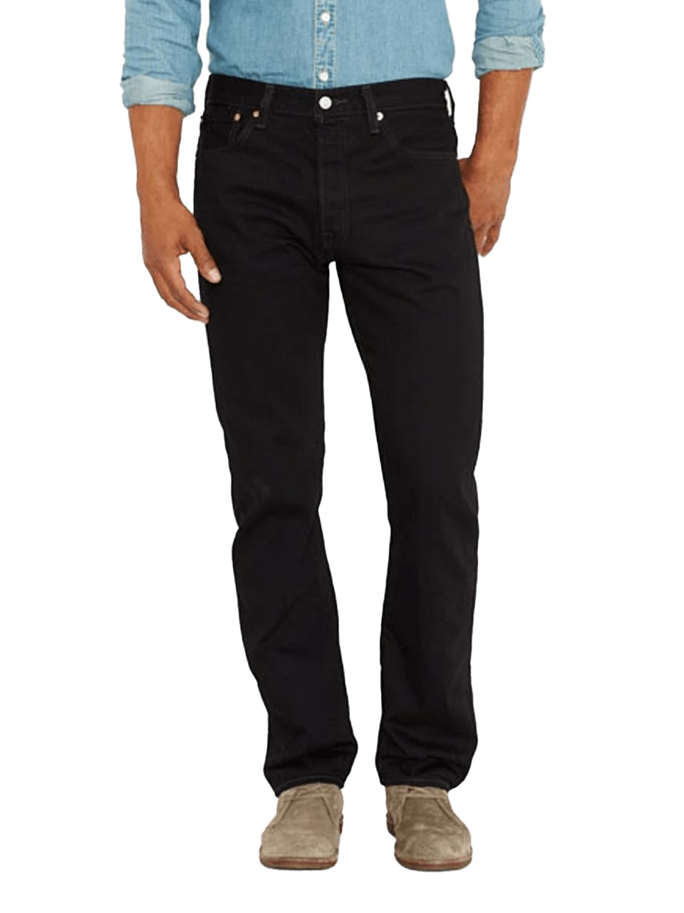 These Levi Strauss 501 Black Jeans are classic denim. This jean features Levi’s signature button fly and fits straight through the hip.
