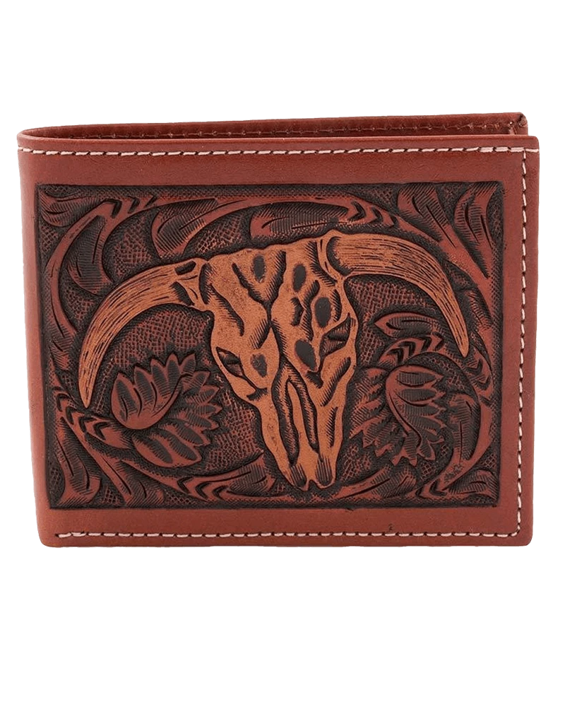 Carry your money in this fashionable bifold wallet by M&F Western Products. Tan with a floral design. Inside features compartments for your credit cards, cash, and an ID window.