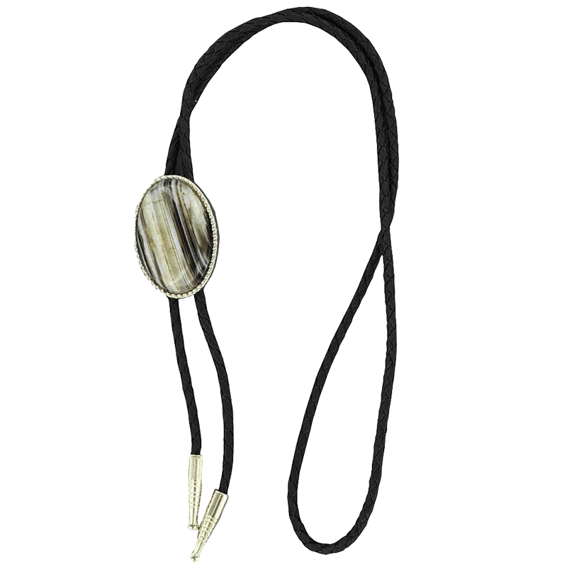 Dress to impress with this oval onyx stone bolo tie by M&F Western Products. Black leatherette bolo cord with metal tips. A classic bolo tie can really dress up an outfit and make a statement of true western class.