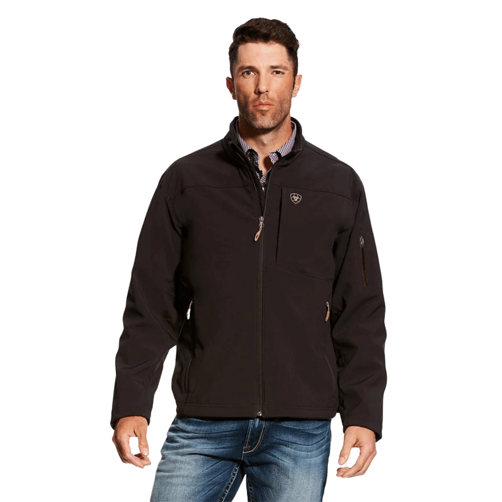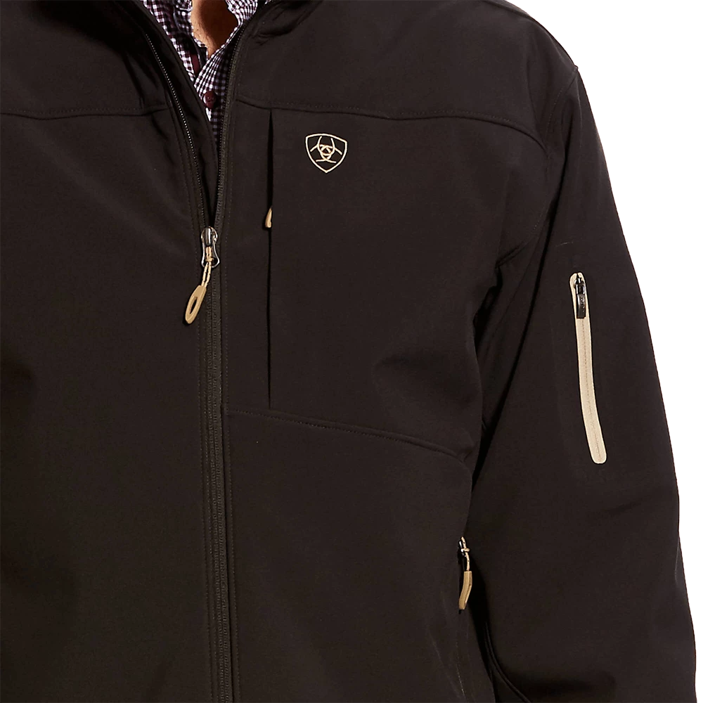 - Softshell stretch nylon with laminate finish and microfleece