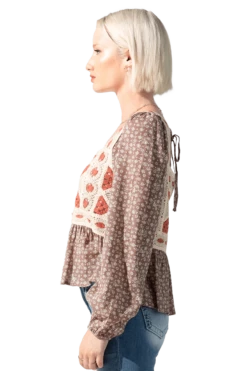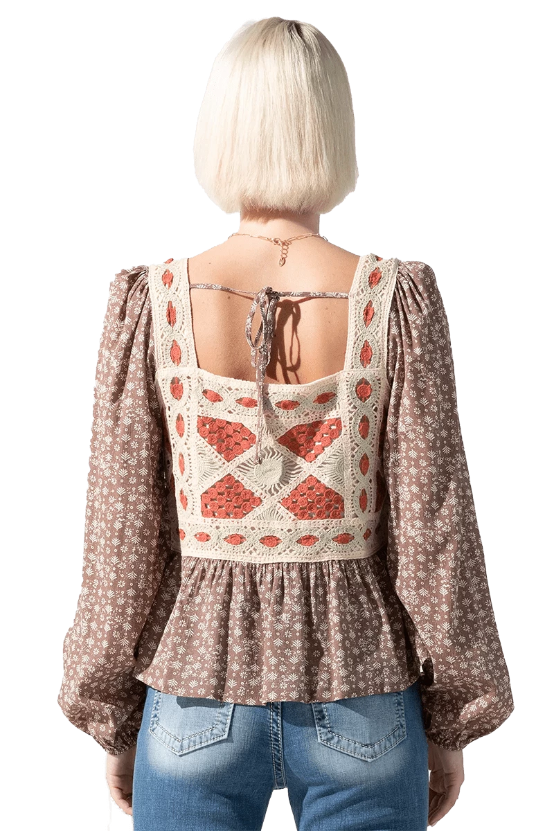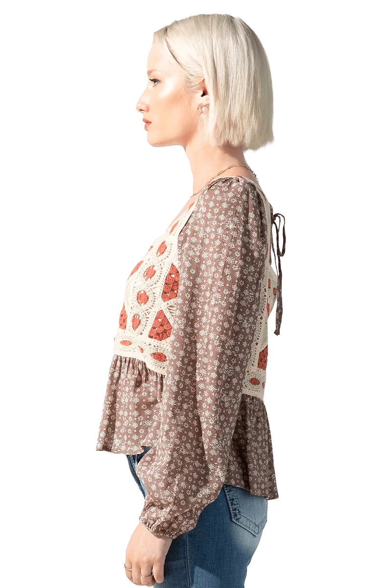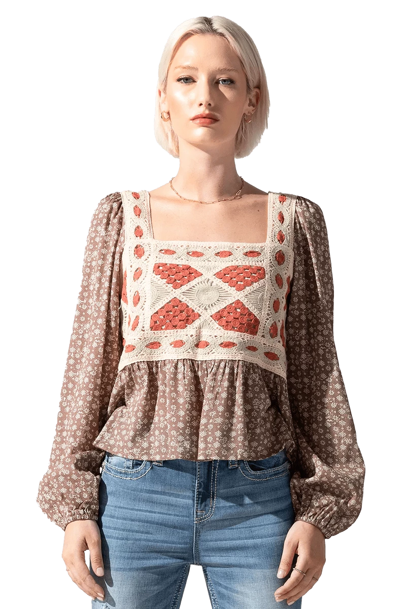 Get in style with this Ditzy floral printed top with crochet detail. Don’t miss out and get yours today!
