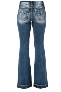 If you’re a girl who likes a subtle touch of uniqueness without going overboard, take a look at this exquisite Miss Me design with its delicately stitched edge border flap pocket. The medium wash and mid-rise cut, coupled with charming sailor trouser buttons make it ideal for any occasion – your new ideal choice!