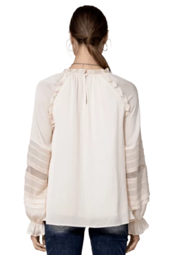 The Miss Me Satin Effect Top is a feminine and elegant choice for any occasion. This blouse features a floral printed chiffon fabric with ruffle trim and balloon sleeves, creating a flattering and flowy silhouette. The satin effect adds a touch of sophistication and luxury, making it the perfect choice for any formal event or night out.