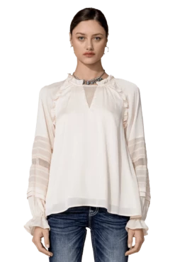 The Miss Me Satin Effect Top is a feminine and elegant choice for any occasion. This blouse features a floral printed chiffon fabric with ruffle trim and balloon sleeves, creating a flattering and flowy silhouette. The satin effect adds a touch of sophistication and luxury, making it the perfect choice for any formal event or night out.