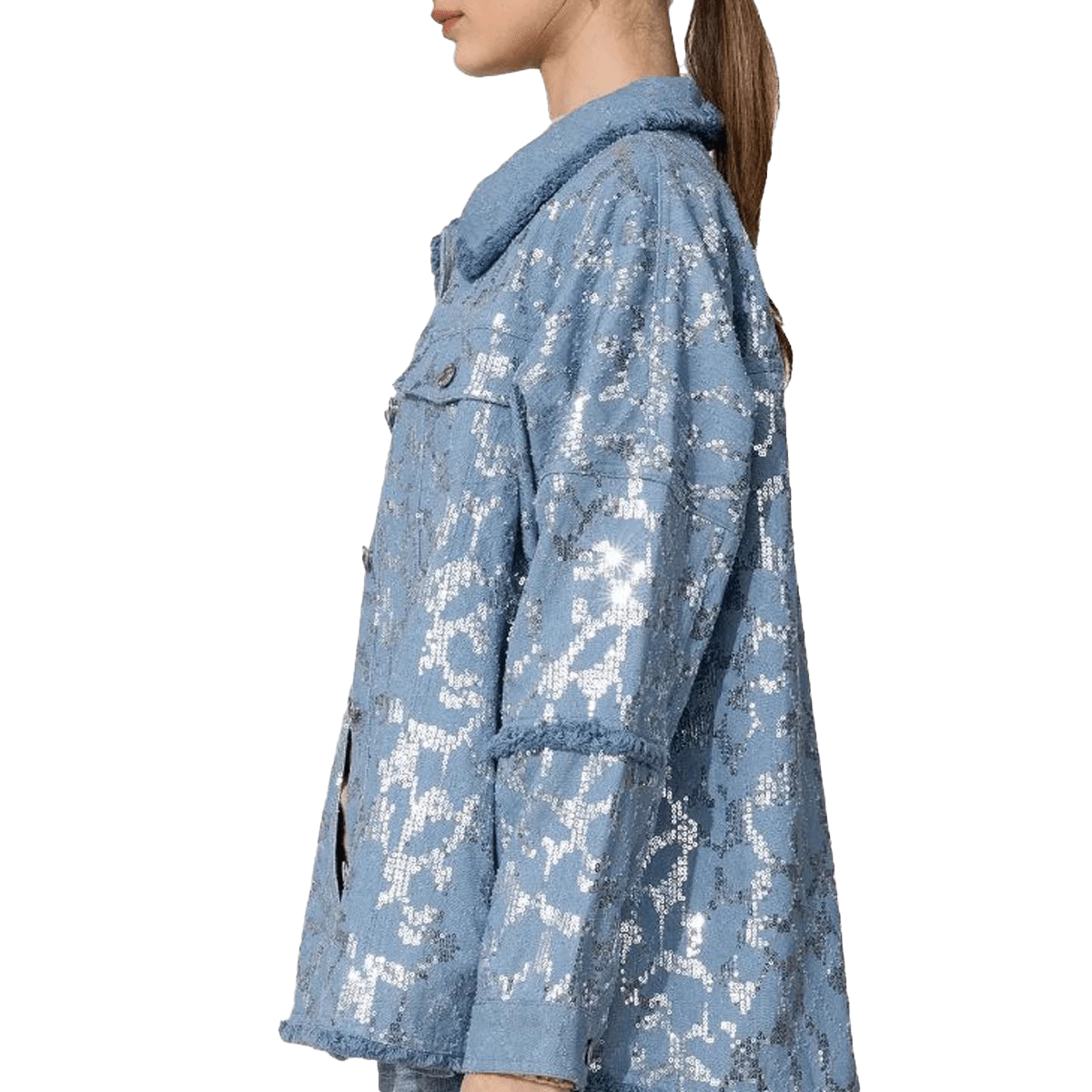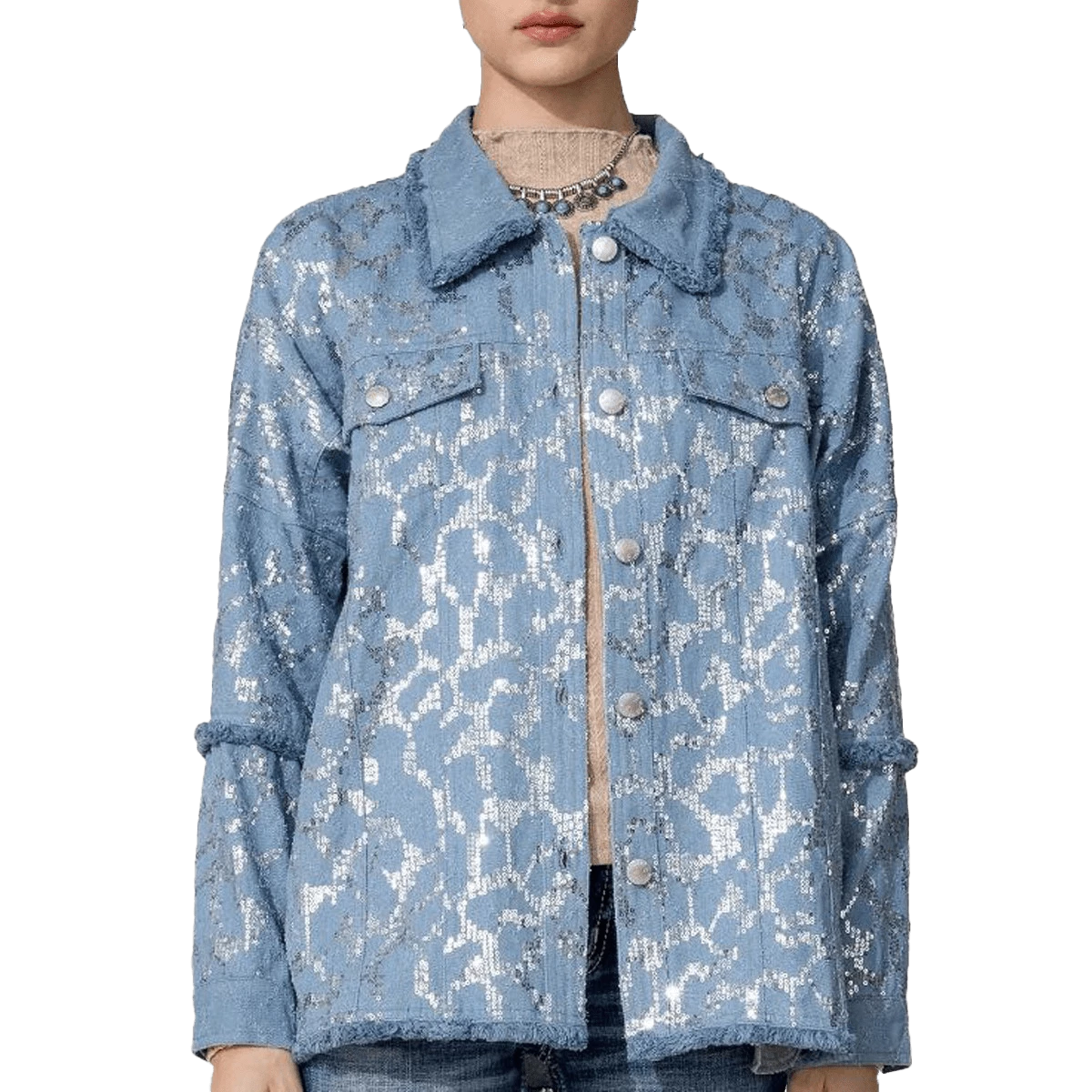 The Miss Me Women’s Sequin Button Down Jacket is a glamorous and stylish addition to any wardrobe. This jacket features a classic denim fabric with a touch of sparkle, thanks to the sequin detailing on the front and back yoke. The button-down design and front pockets provide a classic and functional look, while the fitted silhouette adds a touch of femininity. Perfect for dressing up or down, the Miss Me Women’s Sequin Button Down Jacket is a versatile and chic option for any occasion.
