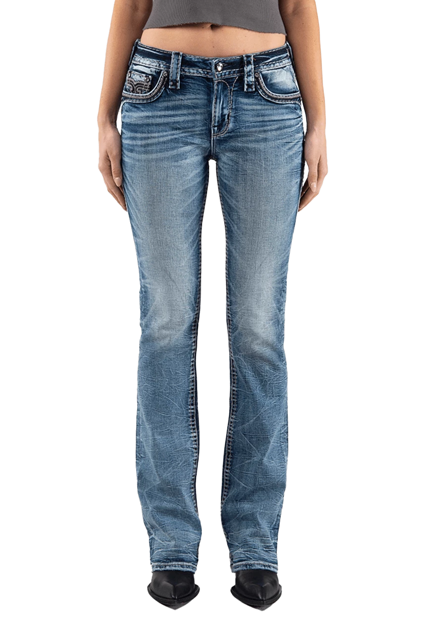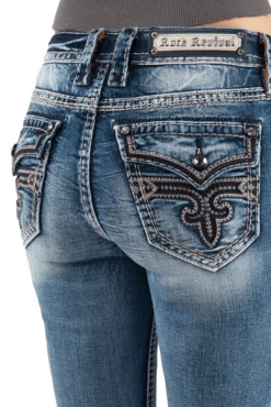 Get in style with these fashionable bootcut jeans by Rock Revival. Perfect to wear with your favorite pair of boots.