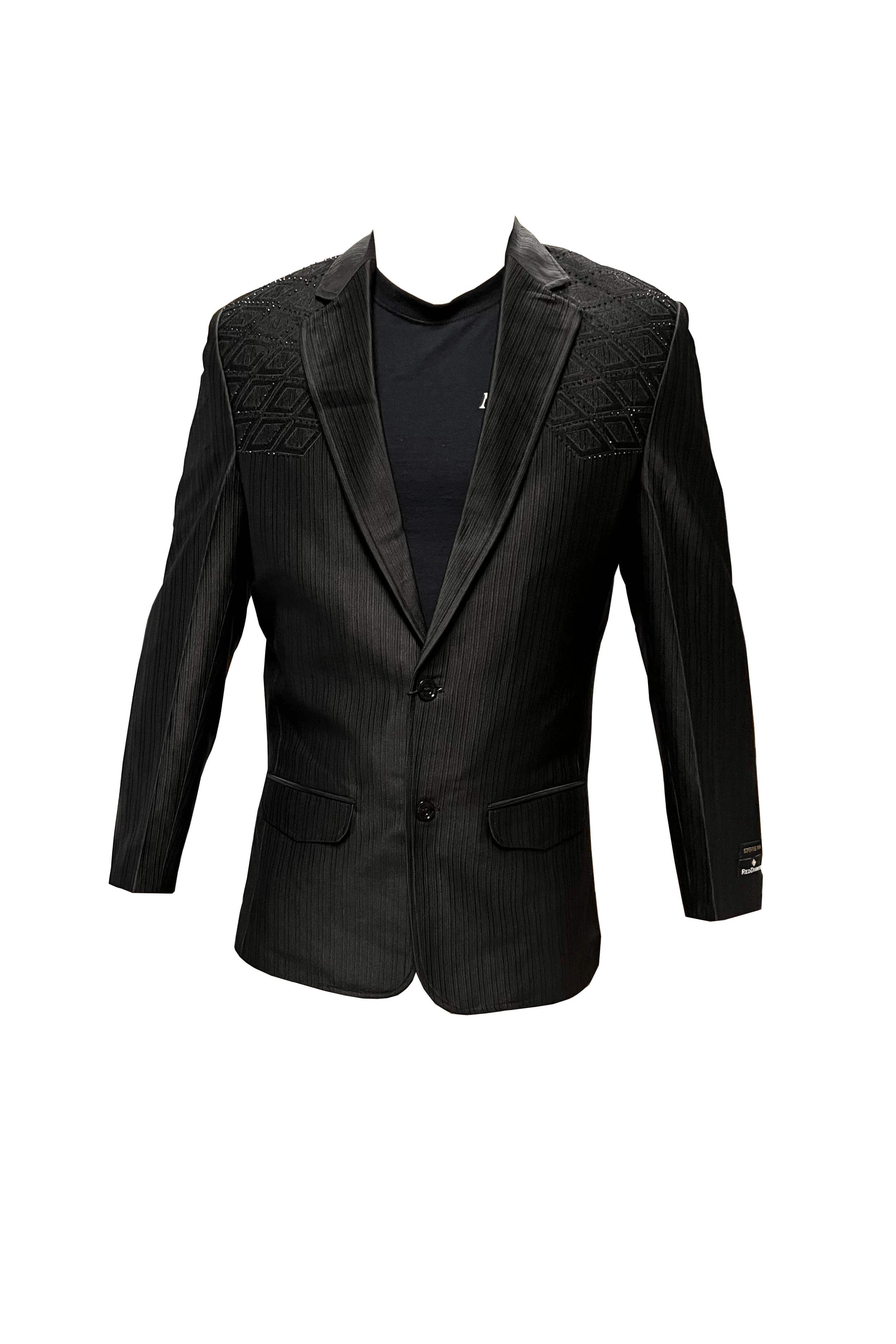 Red Diamond Embroidered W Black Stones Suit Coat is a fashionable coat that features intricate embroidery and black stones. Red Diamond features superior men’s apparel that will not disappoint!Â
