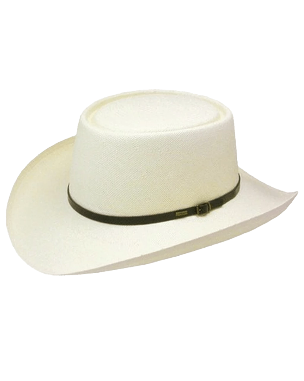 Resistol Gambler 10x Straw Hat is from the Qualifier collection. This is a handsome 10x straw cowboy hat that is accented with a leather band and a 3 1/4” brim and a 3 1/8” long oval crown.
