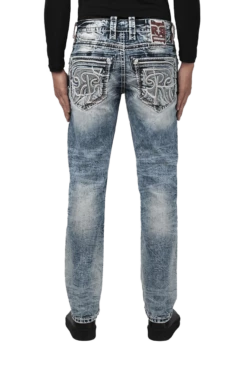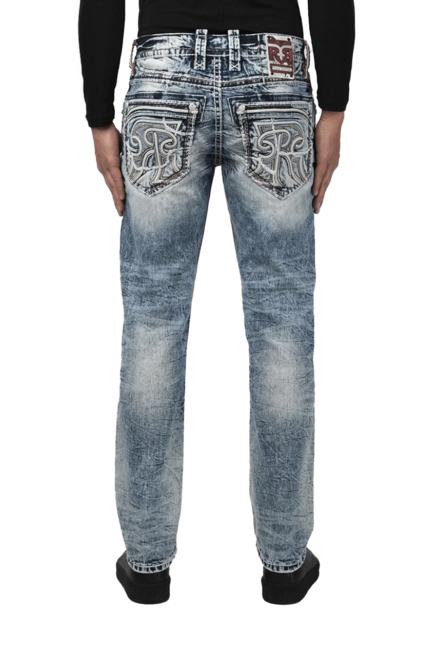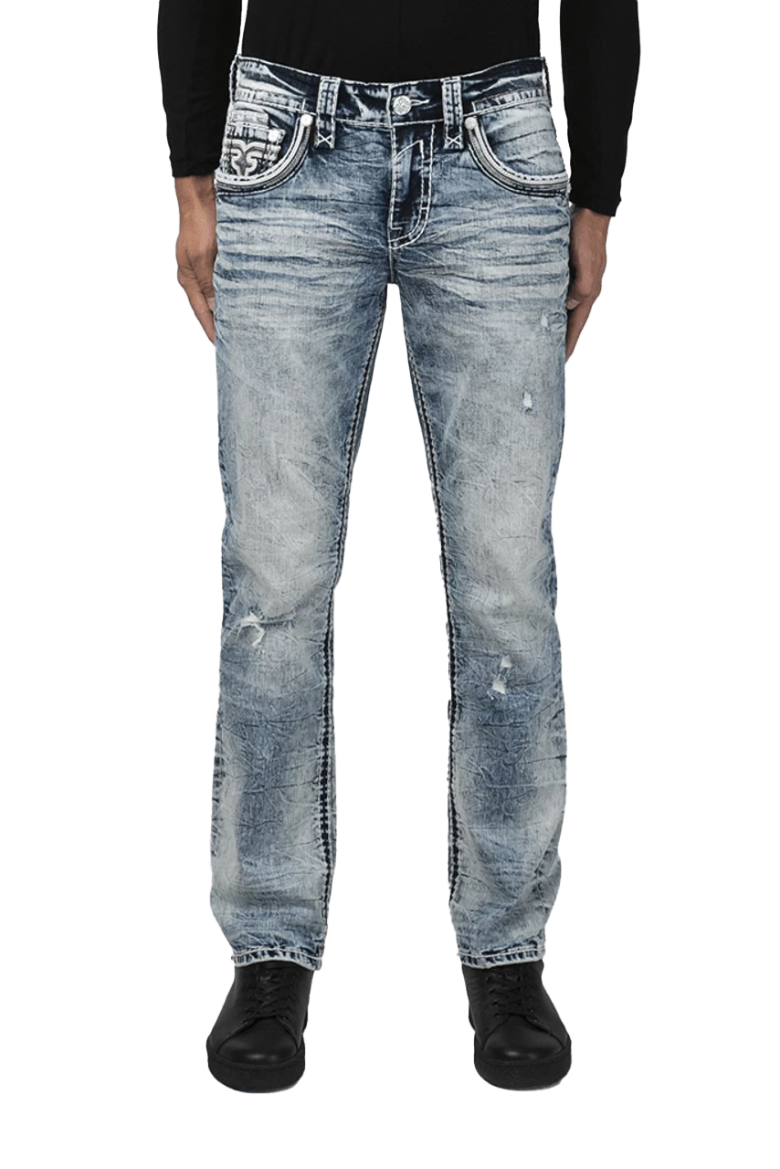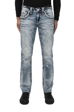 - Blue acid wash distressed alt-straight fit jean