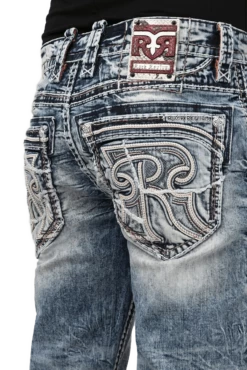 - Signature reverse ‘R’ waist patch with metal Fleur De Lis