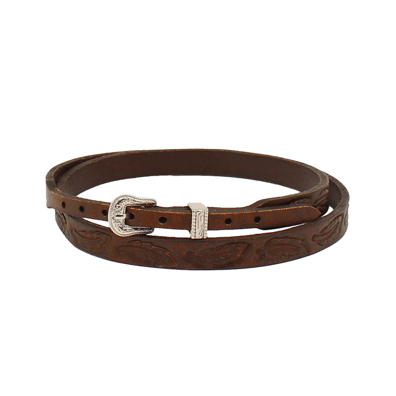 Give your hat a great new look with this leather hatband by M&F Western Products. Feather tooling with a buckle closure.