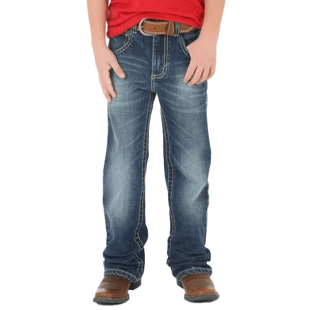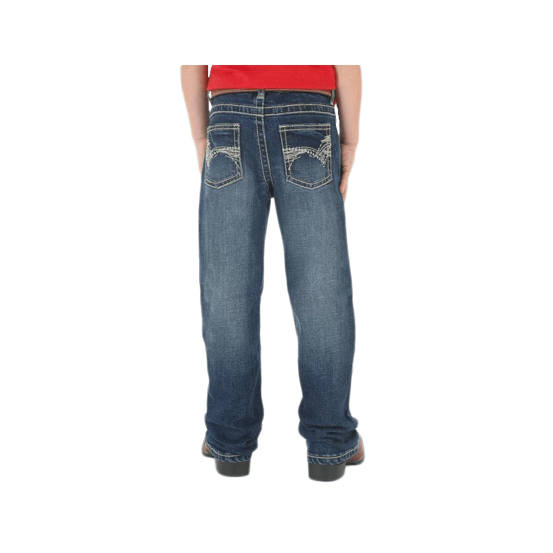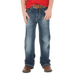 From the Wrangler 20X Collection, these Wrangler Boys 20X Vintage Boot Slim Fit Jean (4-7) blends authentic Western-style with modern-day comfort. These jeans have everything you know and love about Wrangler such as the authentic five-pocket styling, embroidered back pockets, and a vintage boot cut leg opening so your little cowboy can wear them with his favorite pair of boots. Sits low on the waist and features a slim seat and thigh.