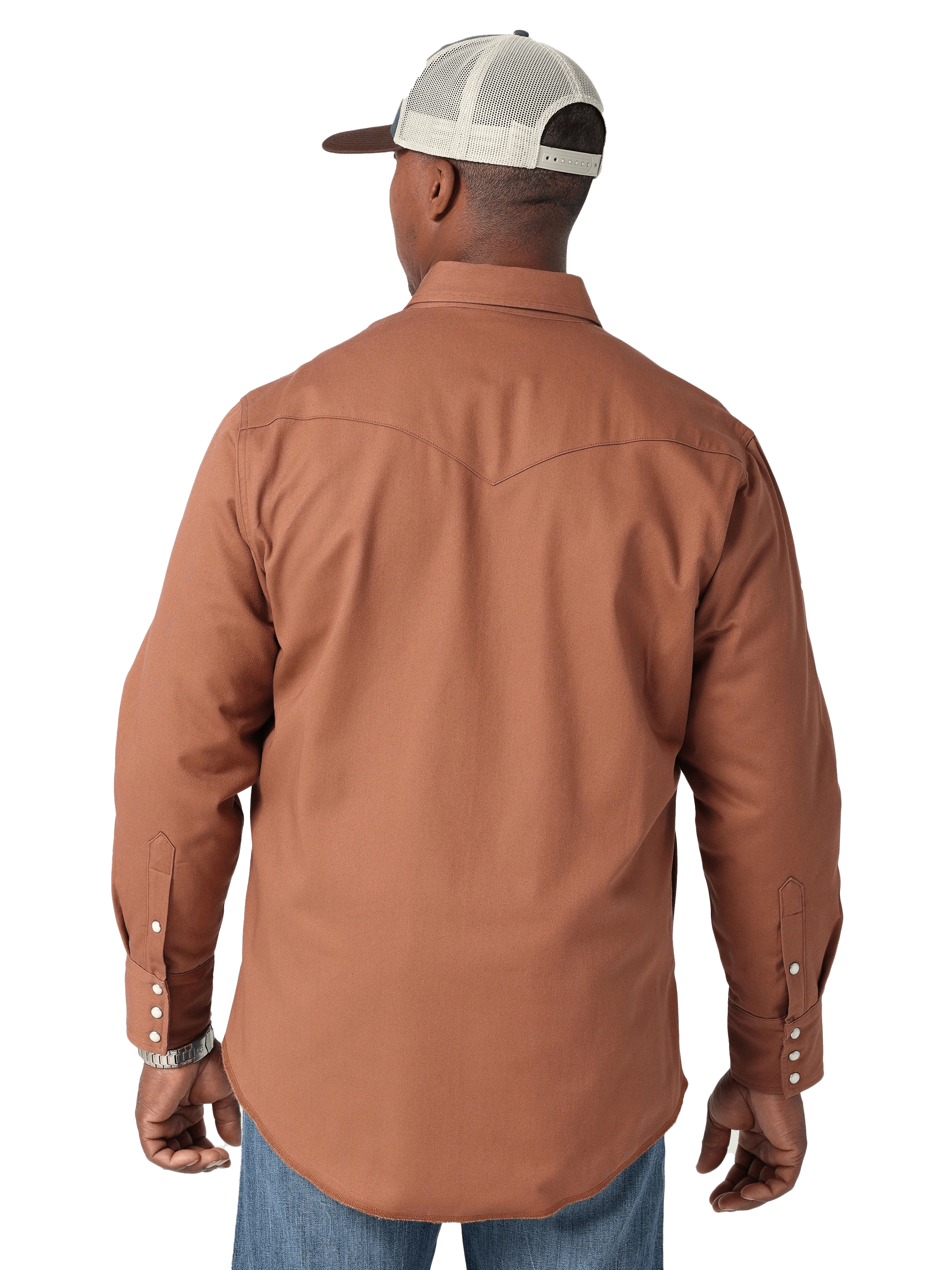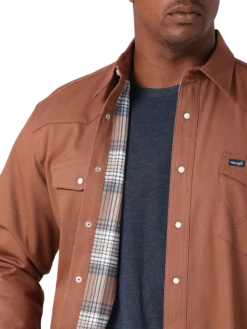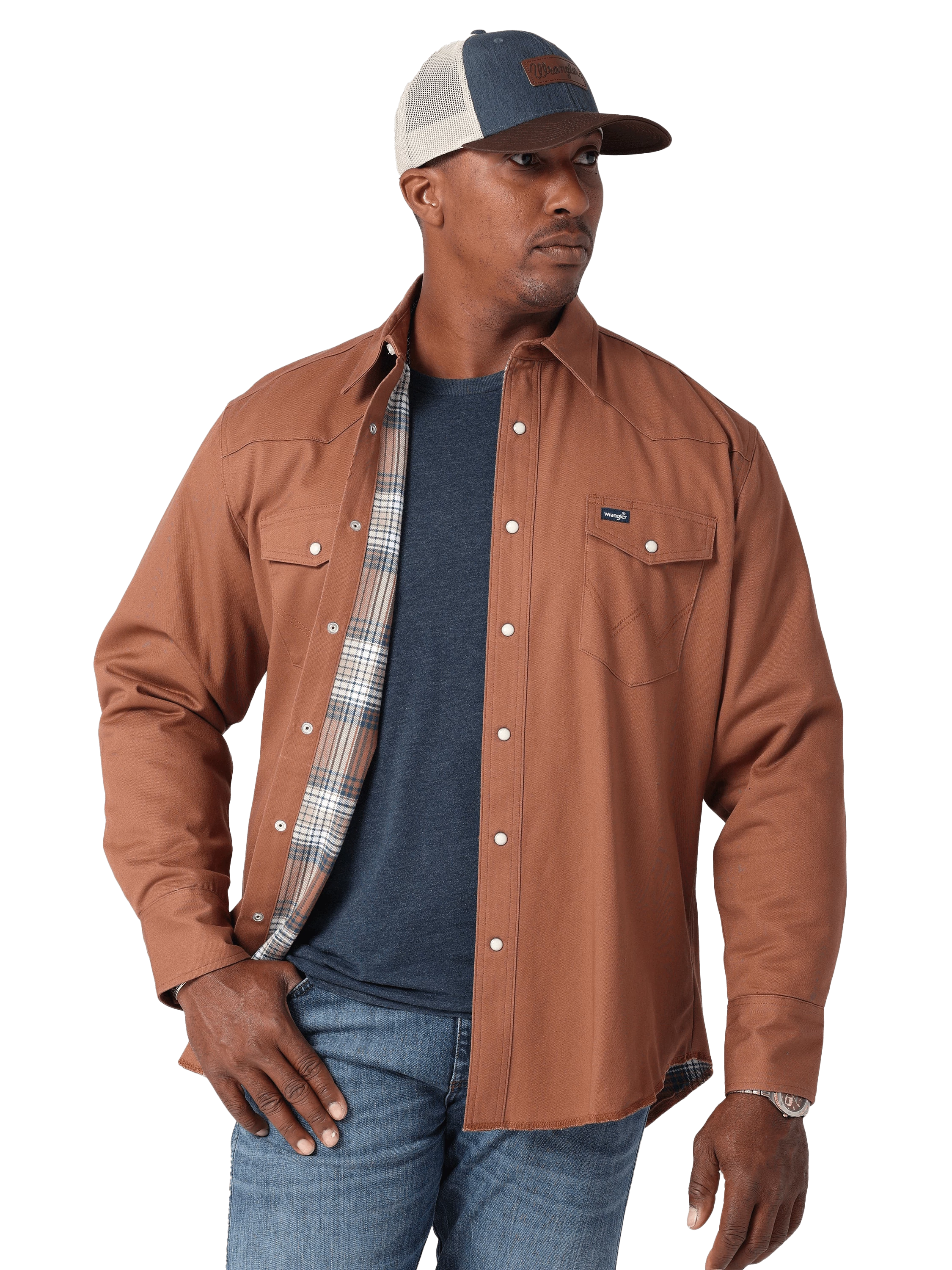 The Wrangler Men’s Flannel Lined Work Shirt is made for the hard-working man who needs to stay warm during the colder months. Made with a 100% durable cotton twill exterior and an interior of warm flannel that is perfect for chilly days on the job. Designed with true Wrangler features, this snap-down shirt has two snap flap pockets, Western yokes, a riser label, side seam pockets, serged tails, and a pencil pocket for convenience.