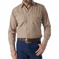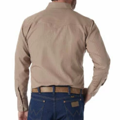 Wrangler Men’s Tan Sport Dobby Stripe Long Sleeve Shirt