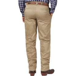 These Wrangler men’s khaki casual pants are made of stretch twill fabric. Flat front, sits at the waist and relaxed through seat and thigh. Wrinkle-resistant fabric.