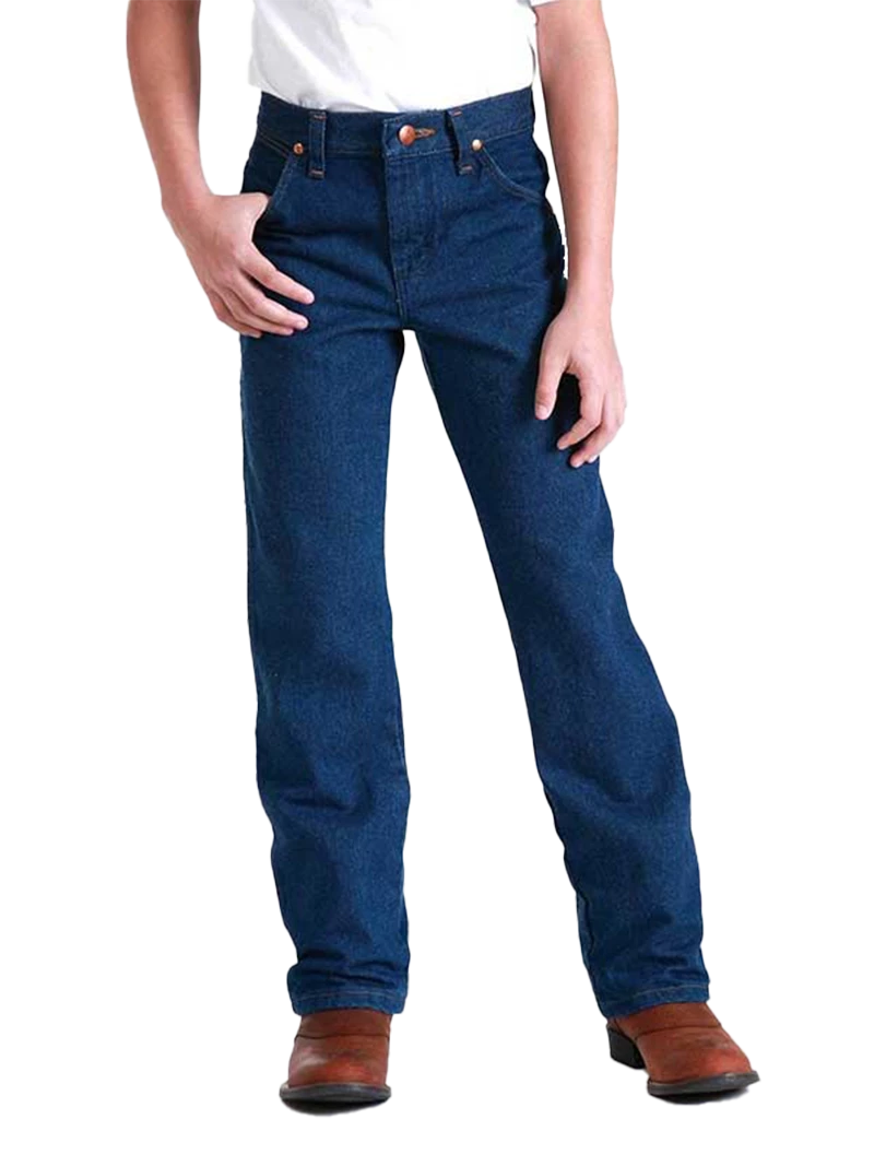 This Wrangler Prewashed Cowboy Cut Original Fit Boys’ Jean is made with heavyweight broken twill denim and has all the classic western details of the men’s jeans. Features an adjust-to-fit waistband to fit your little cowboy as he grows.
